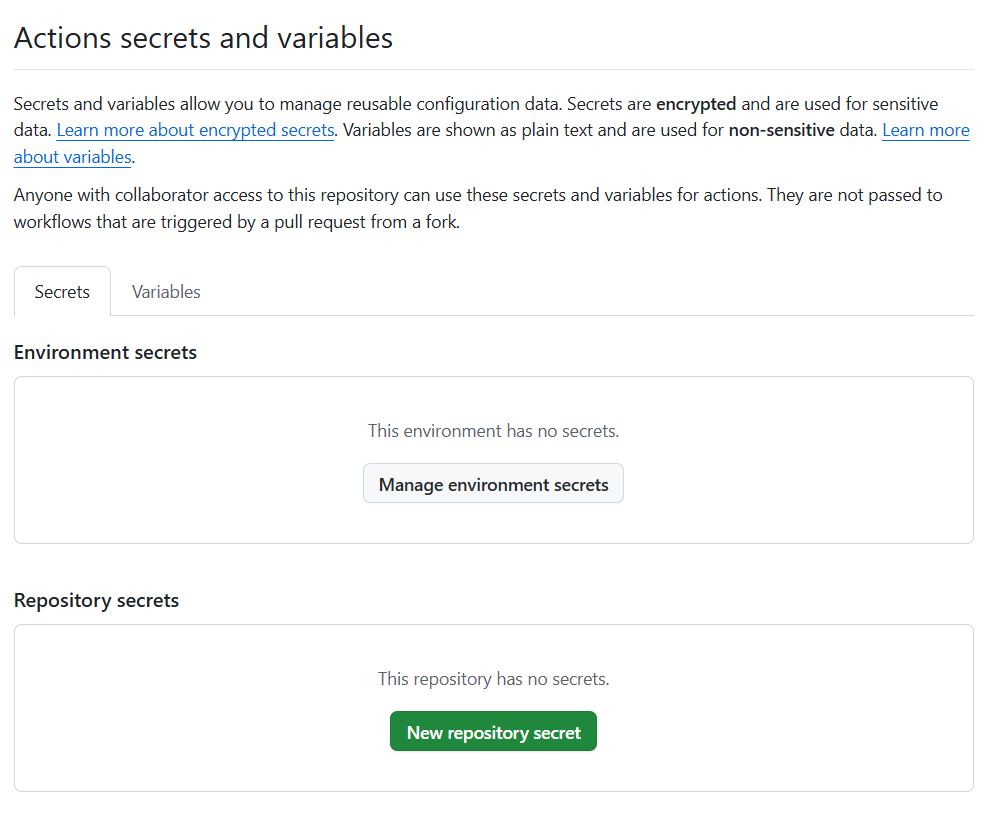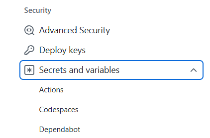 Then, on the navigation-bar in the left, goto Secrets and variables.