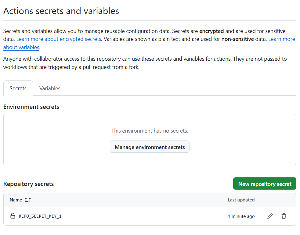 This will redirect us back to the Secrets section, where we can see the newly added secret.
